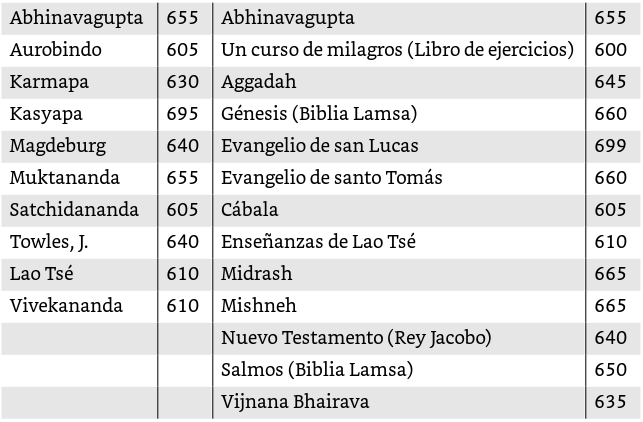 Niveles de calibración de algunos maestros y escritos que están en el nivel 600